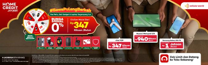 Beli Gadget & Laptop, di Cellular World Mulai Rp347 Ribuan/Bulan!
